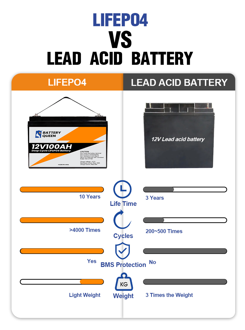 This 12V 100AH lifepo4 battery pack buit in BMS, protect your battery cell anytime.
