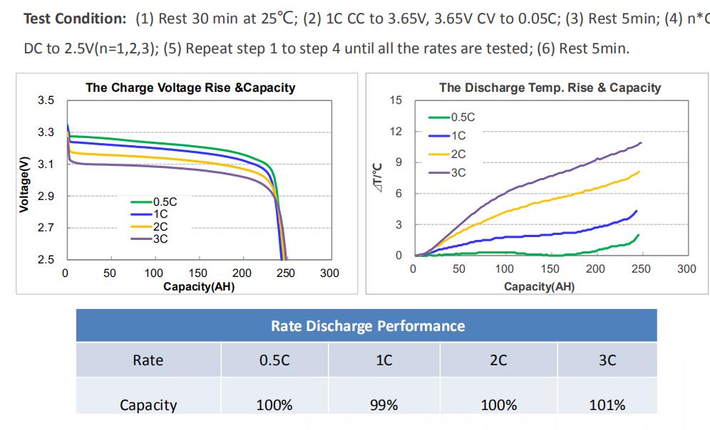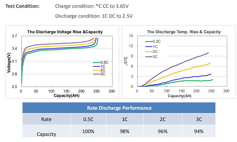 Cell capacity @ 25 ℃ ,0.5C Ah: >=240